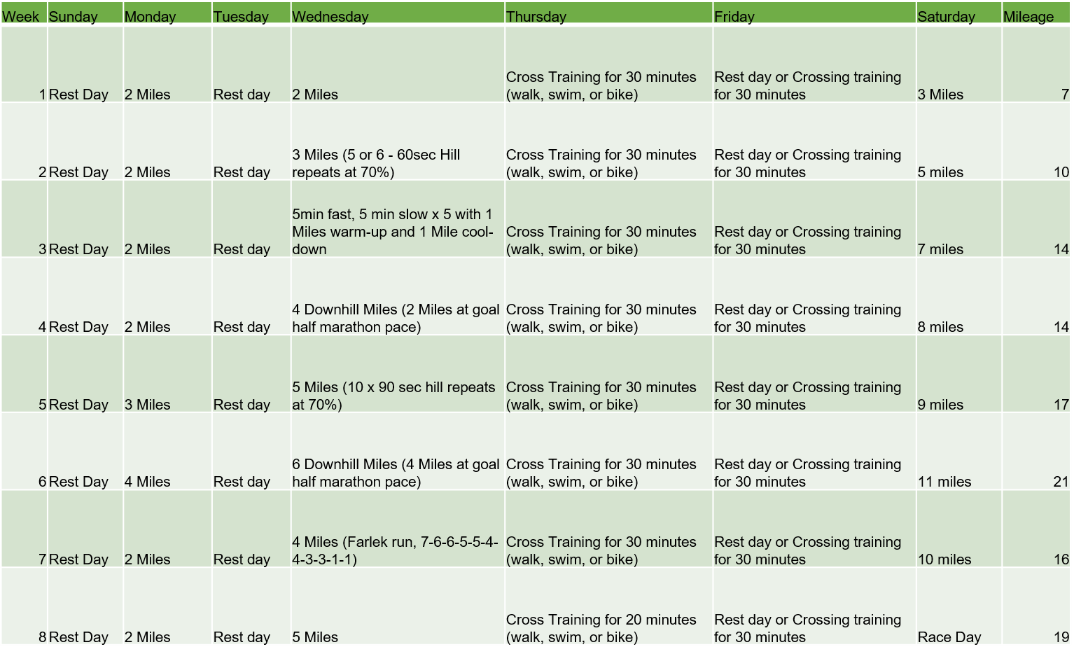 8 Week Beginner Downhill Half Training Plan